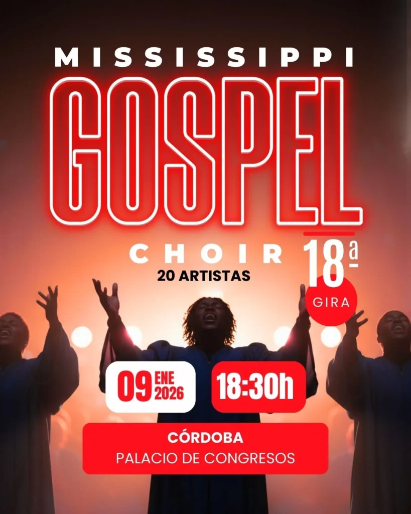 Prepárate para vivir una experiencia musical vibrante, llena de luz y sentimiento. Mississippi Gospel Choir trae a escena la esencia más auténtica del gospel afroamericano: voces que estremecen, ritmos que elevan y una conexión con el público que se siente desde el primer acorde. Un espectáculo que celebra la vida, la fe y la alegría de compartir música en comunidad.